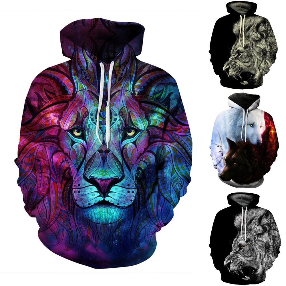 Good Product 3D Lion Print Hoodies Women Men Animal Pattern Print Hooded Long Sleeve Pocket Pullover Winter Casu