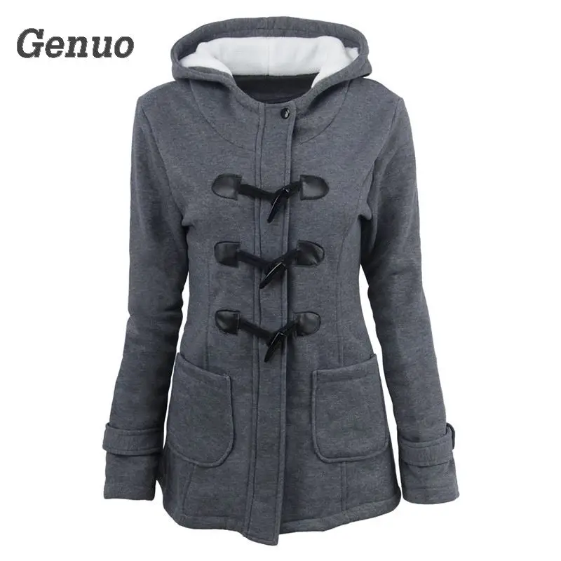 New Product Genuo Autumn Winter Women Slim Hoodies Long Warm Zipper Sweatshirt Wool and Cotton Horns Buckle Des